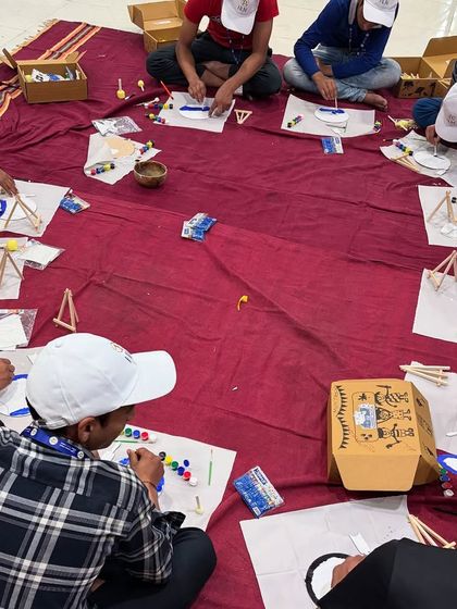 We run short, themed art workshops where kids and families create festival crafts, science-art projects, and story-based art together, with all materials provided and activities designed to build creativity and confidence.