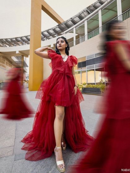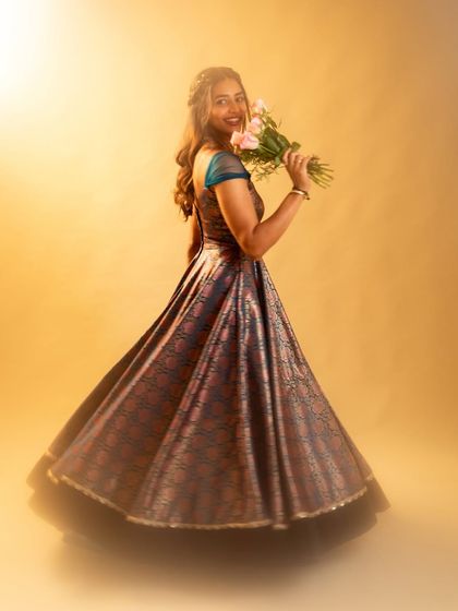 We specialize in high-end fashion photography, collaborating with professional photographers like Mayartha Productions and Maidana Eva Photo Films to capture our designer collections. Our shoots blend traditional Indian aesthetics with modern styling elements.
