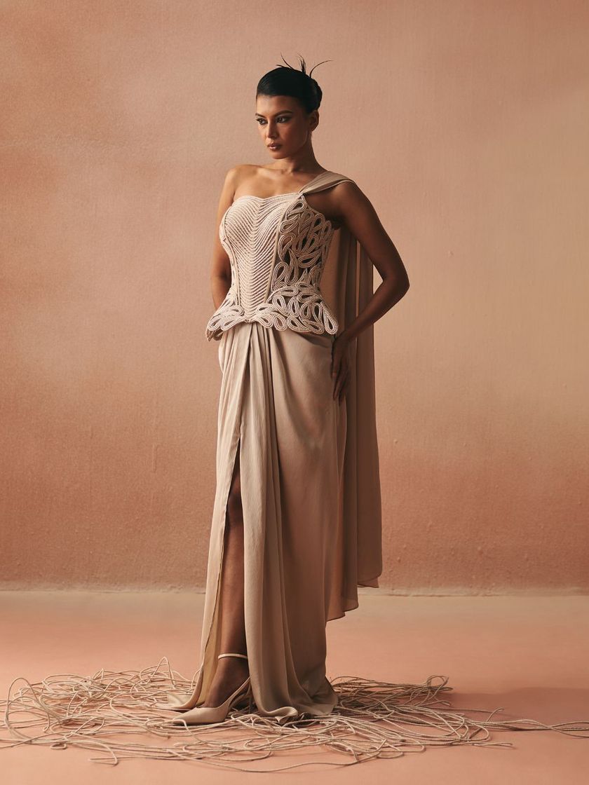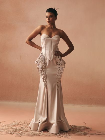 The corset is the architectural heart of my collections. I use it to sculpt the body, creating silhouettes that are both strong and sensual. Whether paired with a draped sari, a voluminous skirt, or tailored pants, each corset is a statement of modern femininity.