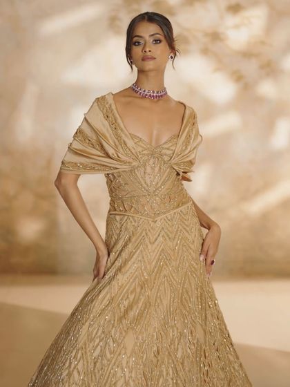Bespoke Womenswear Couture - We create contemporary Indian and Indo-Western looks - gowns, lehengas, sculpted drape ensembles, corset sets, pre-stitched saris.