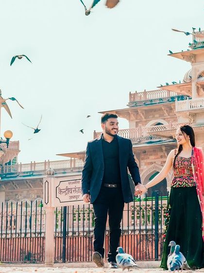 Let the vibrant colors and majestic architecture of Jaipur and other heritage sites tell your story. I have extensive experience shooting in Rajasthan, using its royal palaces, intricate doorways, and sun-drenched courtyards to create photos that are rich in culture and romance. This collection features both grand, wide-angle shots and intimate portraits.