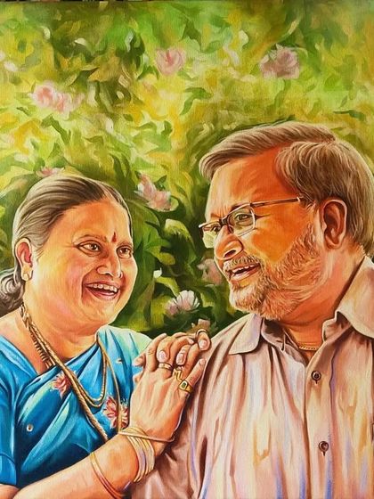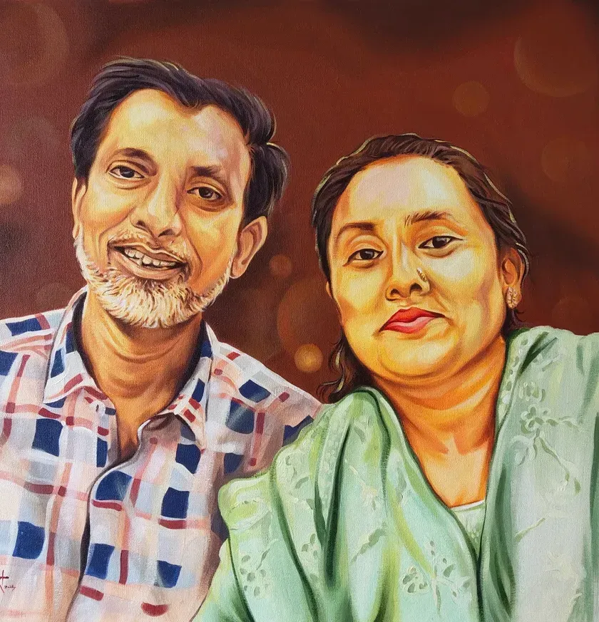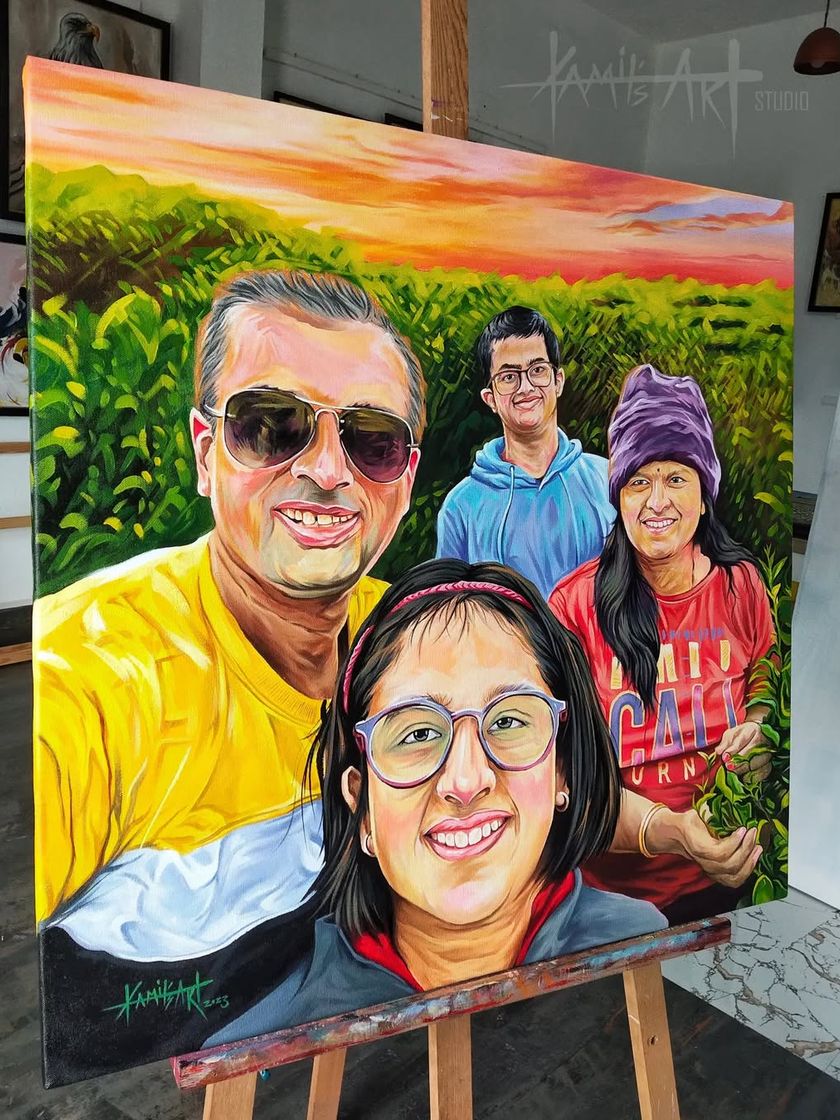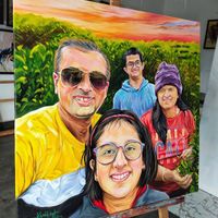 I create custom family paintings that bring everyone together on one canvas. Even if your family members are in different photos, I can combine them to create a single, unified group portrait.