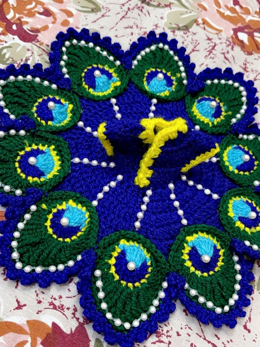 For devotees who travel with their beloved Bal Gopal, I have designed these special crochet travel beds. Each set is handmade from soft wool and includes a cozy bed, a small mattress, a pillow, and a blanket to ensure Kanha Ji is always comfortable.