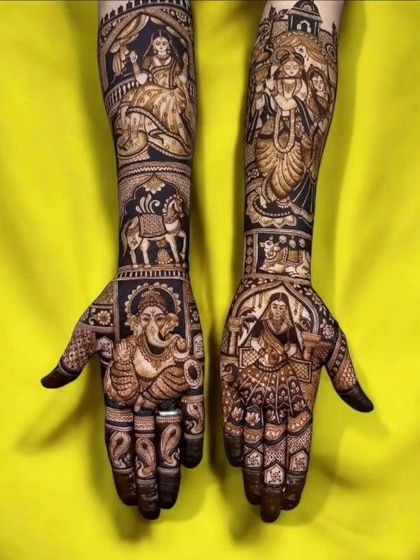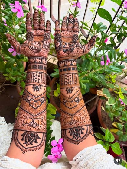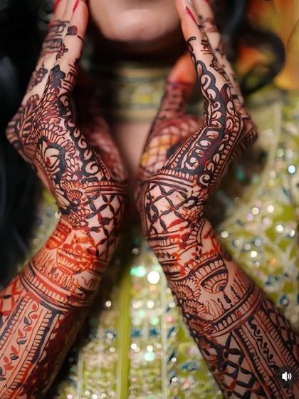 Bridal & Custom Mehndi - Portrait bridal mehndi, custom wedding story mehndi, baby shower mehndi designs, festival ke liye bhi intricate patterns milenge.