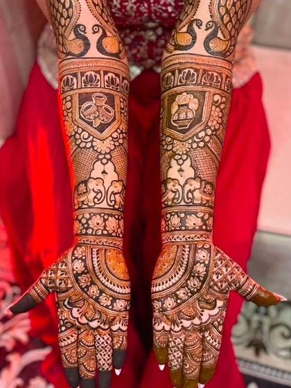 Bridal & Custom Mehndi - Portrait bridal mehndi, custom wedding story mehndi, baby shower mehndi designs, festival ke liye bhi intricate patterns milenge.