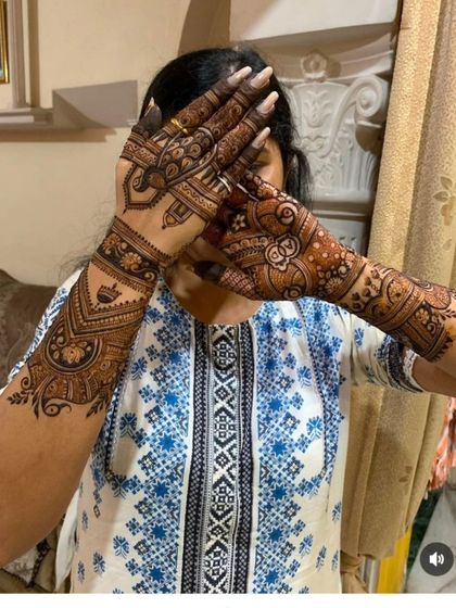 We create personalized mehndi designs blending traditional and modern styles for all special occasions. Our designs incorporate intricate patterns including floral motifs, geometric patterns, cultural symbols, and even custom portraits or figures based on your preferences.