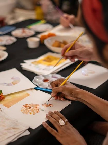 - Natural ink making workshop: Extract colors from flowers and peels, then paint with them.