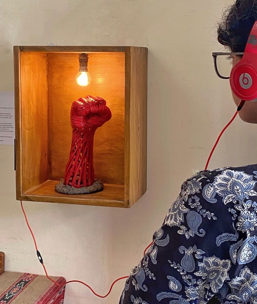 Our space celebrates three-dimensional and mixed-media art that invites interaction and tells a story. This includes everything from intricate sculptures made from natural materials to immersive installations like our 'Orma Petti' memory box.