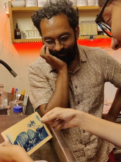 We started Kanike in 2019, calling it a 'gift' - just like the word means in Kannada. This studio’s got its own vibe now, full of handmade, analog messiness we love. Our logo’s got old Kannada script feels, mixing past and present. Some of the best days? Teaching cyanotype to kids in Garike village, watching them run wild with it. Orma Petti (memory box) sits here, holding bits of everyone. We’re all about stories, co-creating, and just letting things happen.