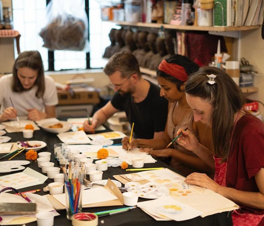 We host a wide range of workshops focused on handmade and analog art forms. Our sessions are designed for small groups of 6 to 10 people, ensuring everyone gets personal guidance from the facilitator in a friendly, collaborative setting. We cover everything from botanical ink painting and pottery to leather crafting and bookbinding.