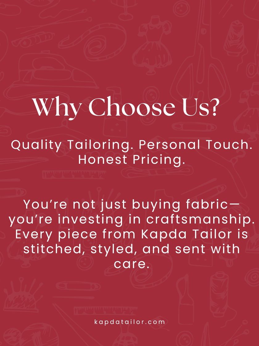 Kapda Tailor is more than just a brand; it's a story of passion and craftsmanship. Here, you can see the care that goes into every piece, from selecting fabrics to the final stitch, and read about our journey.