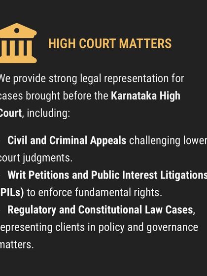 We provide robust legal representation at the highest levels of the Indian judicial system. Our practice is focused on complex litigation before the Supreme Court of India and the Karnataka High Court, covering constitutional, civil, and criminal matters.