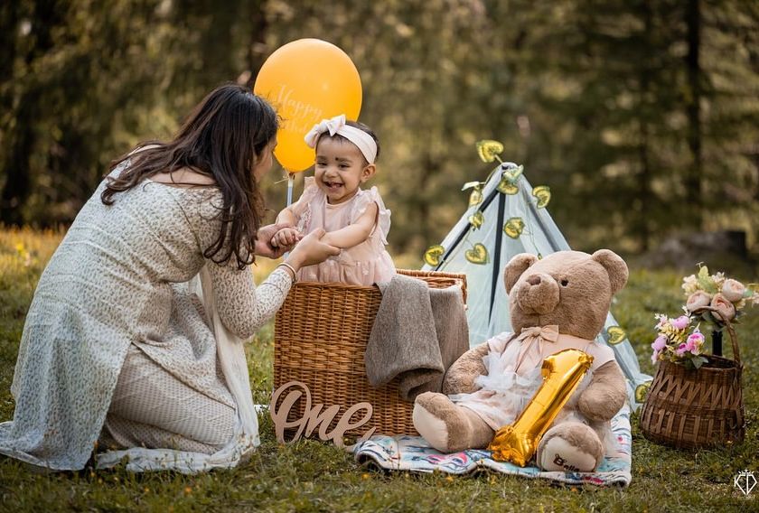 I specialize in creating memorable first birthday photoshoots, often set in the beautiful outdoors with a fun picnic vibe. These sessions are designed to be playful and natural, featuring everything from a custom-themed setup to the messy fun of a cake smash.
