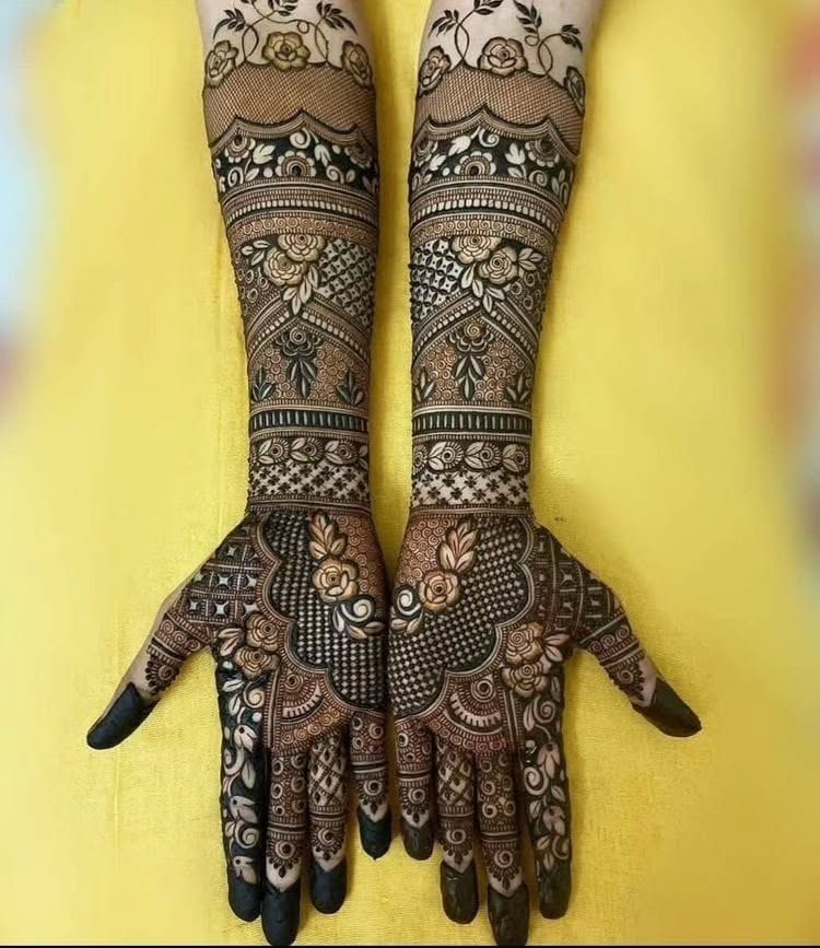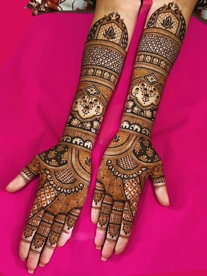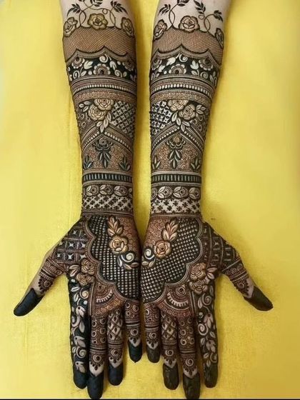 See my expertise in detailed mehendi that extends from the palm to the elbow. These designs are perfect for wedding guests, festive celebrations, or anyone wanting a full, traditional look with guaranteed dark colour.