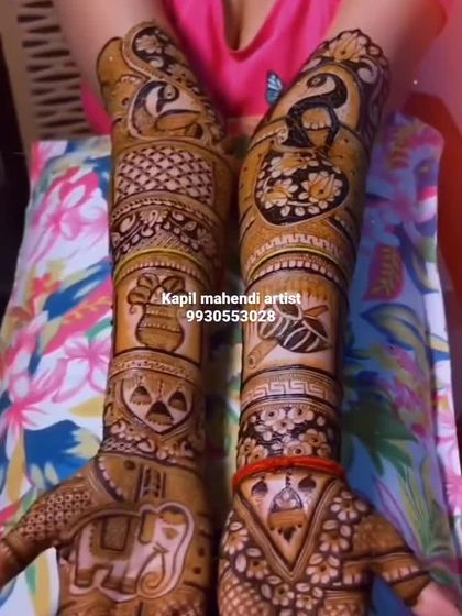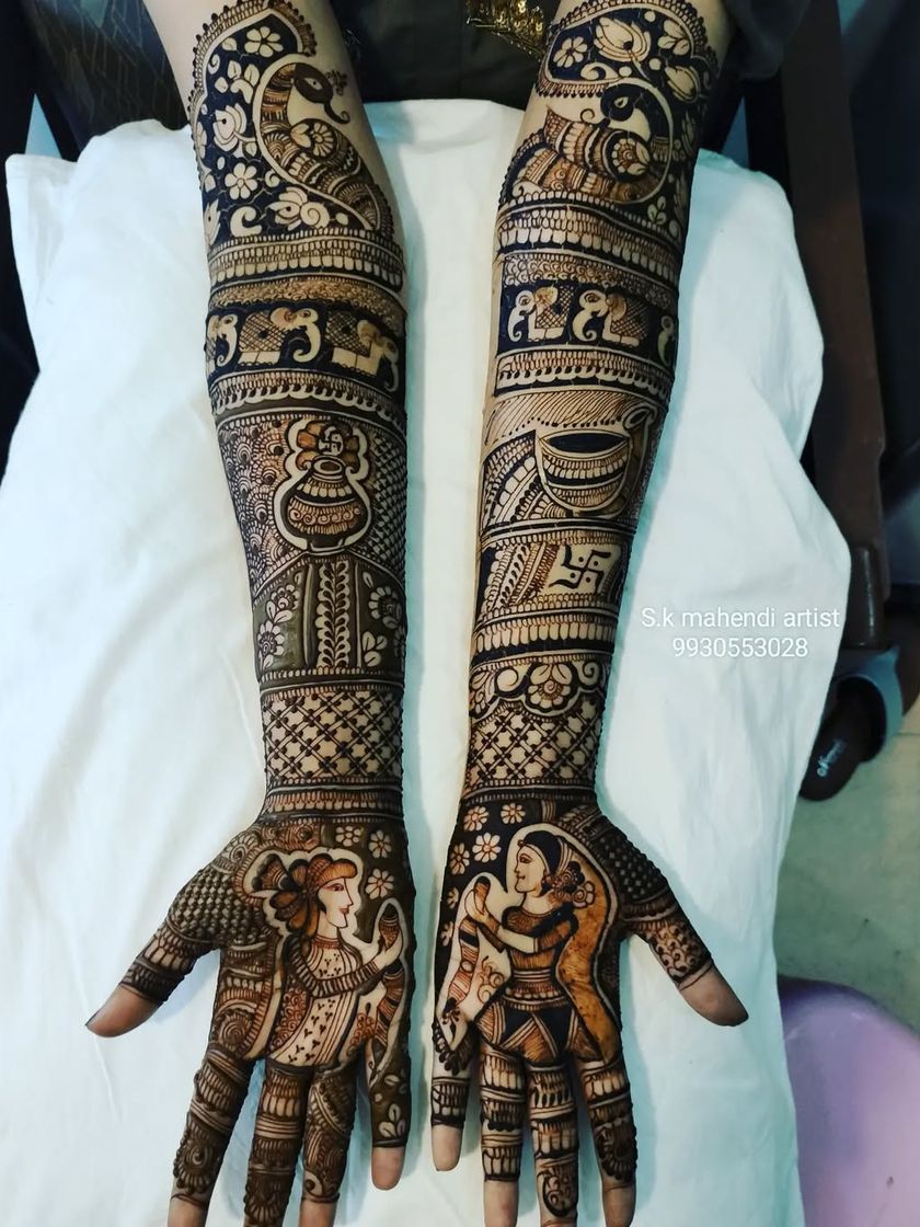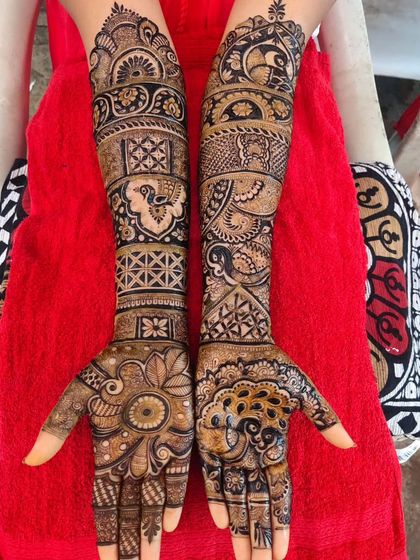 This is the first look at my work. I have selected some of my best and most popular designs to show you the variety and quality I offer. From intricate full-arm mehendi to personalized figures and elegant foot designs, you can see the detail and rich colour I guarantee with my organic henna.