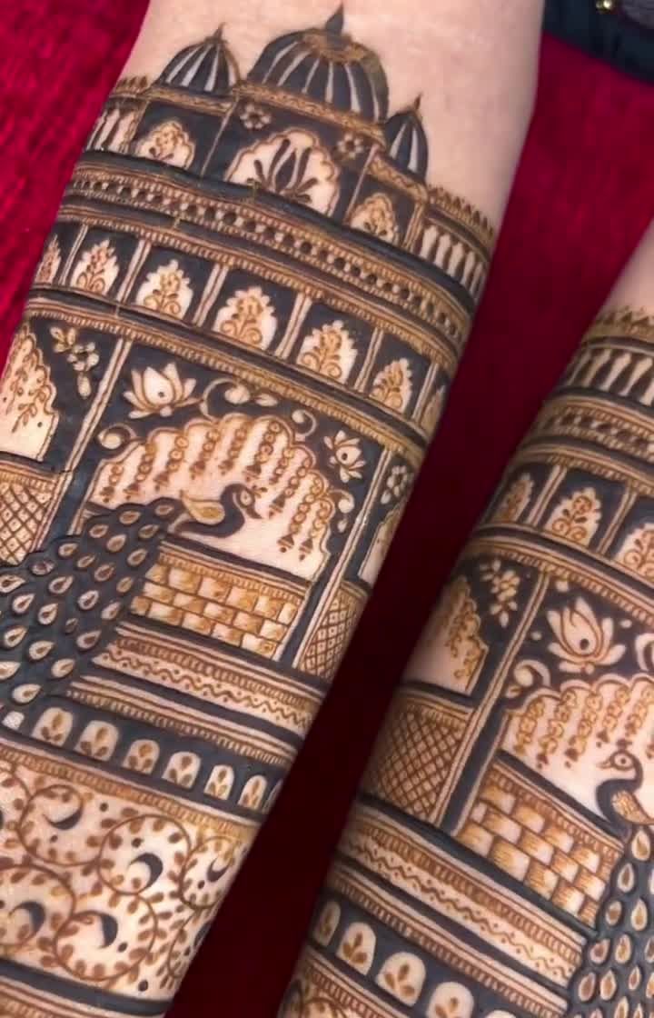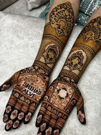 This is my specialty. I create full, elaborate mehndi designs that cover the hands and arms, filled with details that tell your story. Each design is unique, combining traditional patterns with personalized elements to create your dream bridal look.