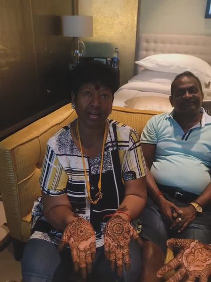 My greatest reward is a happy client. Here you can see some of my beautiful clients showing off their finished mehndi and sharing their experiences. I offer home service and can travel anywhere for your event, ensuring a comfortable and stress-free experience.