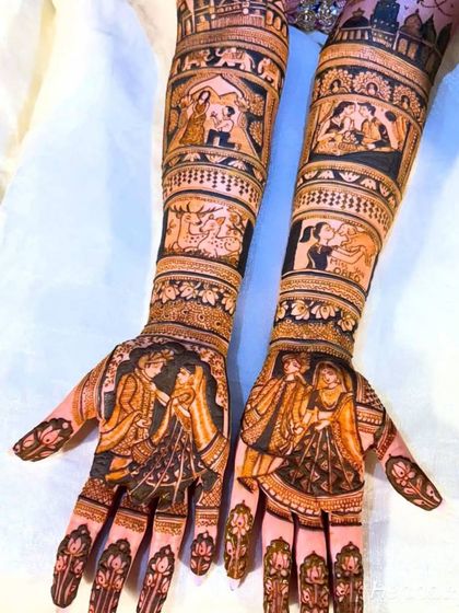 Your mehndi should tell your story. I specialize in creating detailed portraits of couples, family members, pets, or even deities like Radhe Krishna and Ganesh. From your proposal moment to your wedding vows, I can draw any special memory you want to include.