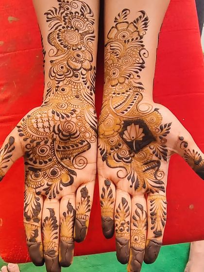 Hello! Main Kapil, Mumbai se. Mehndi mere liye sirf design nahi hai, ek kahani hai jo haath pe likhi jaati hai. Brides ki mehndi mein unki poori journey dikhata hoon - kabhi unke dogs bhi mehndi mein aa jaate hain! Team ke saath har client ko khush karna mera goal hai, chahe Mumbai ho ya videsh. 100% colour aur design ki guarantee hai. Radhe Krishna!