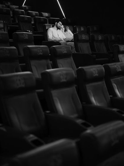 For couples who want something bold and artistic, I use creative lighting, shadows, and unique locations to craft dramatic, movie-like images. This includes everything from moody indoor shots with creative framing to conceptual shoots in an empty theatre. These sessions are about creating a specific atmosphere that tells your story in a powerful way.