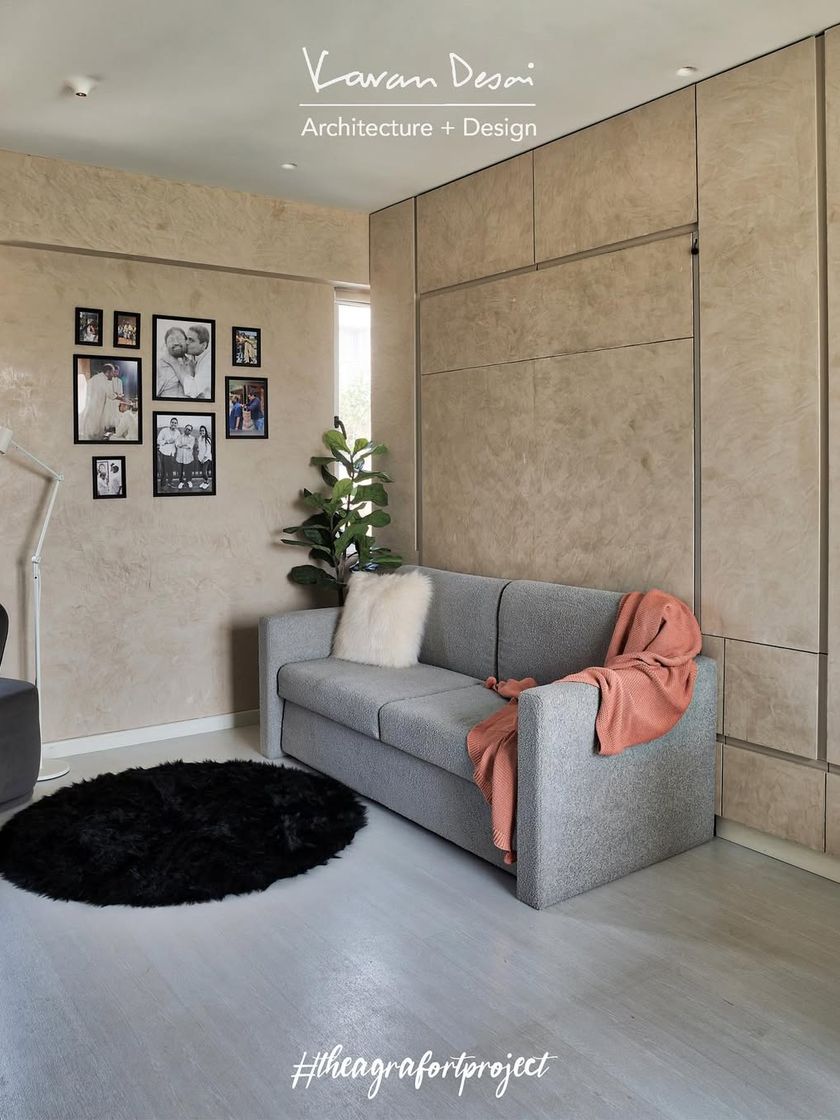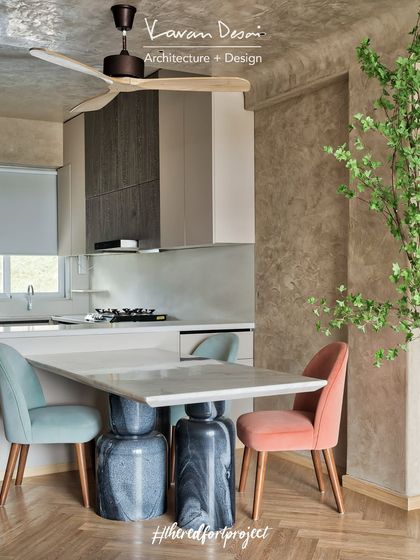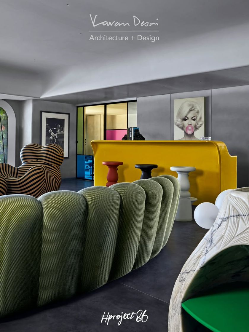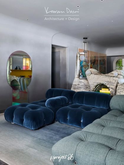 This bachelor pad in Versova was about creating a sensory experience with silent luxury. We played with an ombre wall effect, eclectic art, and iconic furniture pieces to create distinct zones for lounging, entertaining, and living.