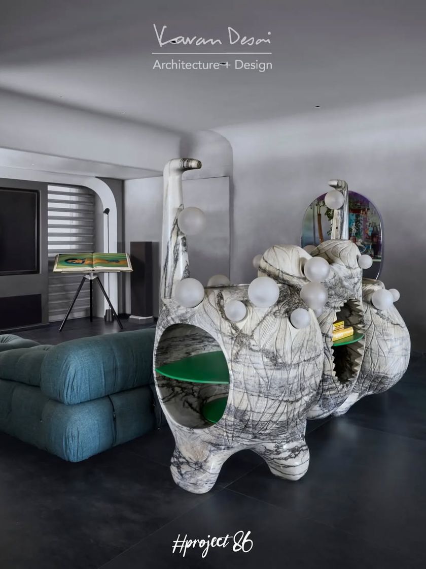 This is where furniture becomes functional art. I design one-of-a-kind statement pieces like the Monster Console, carved from a single block of marble with integrated storage and speakers, that are built to be the soul of your space.