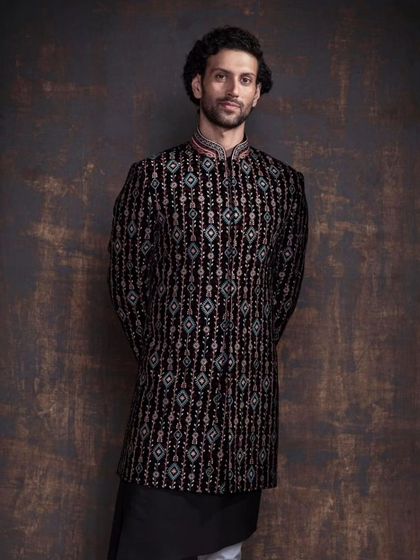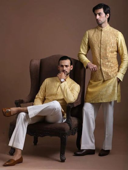 Men seeking sophisticated ethnic wear for weddings, festivals, and formal celebrations who value both traditional craftsmanship and contemporary styling.