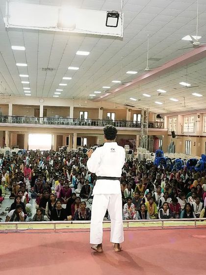 No stress, no judgment. My team and I demo on stage, then everyone joins in. Big group energy, lots of practice, and we always keep it real for namma safety (our safety). Most of my workshops happen around Tirupattur and Vellore, and I bring the training to you—college, company, you name it.
