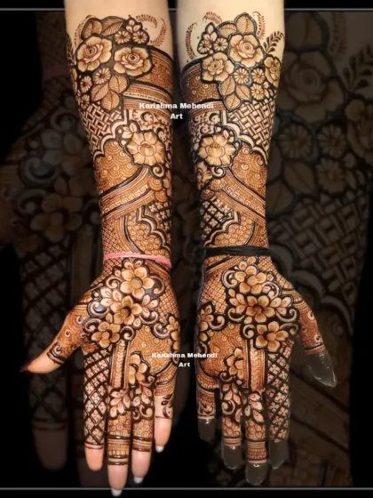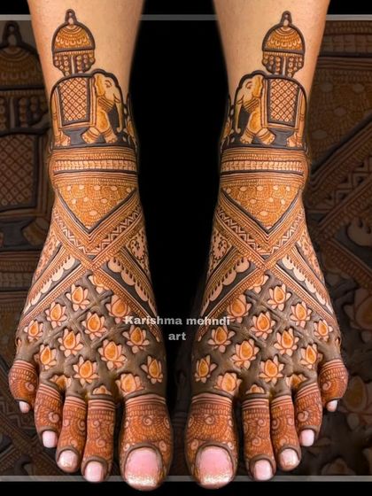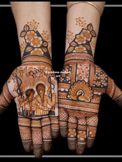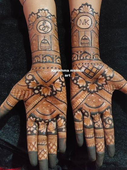 I do custom bridal mehendi with portraits, unique motifs, and natural henna, and can include personal details like pets or wedding dates for you and your guests.