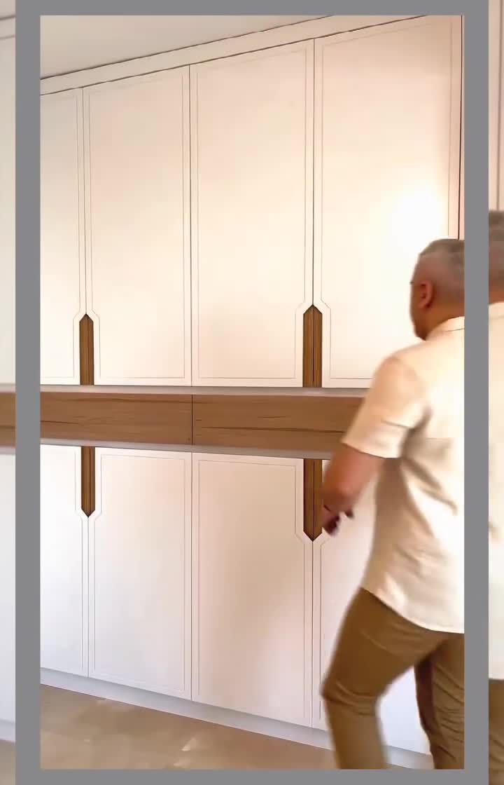 We design custom storage solutions that are both beautiful and practical. See our work on walk-in closets, full-height wardrobes with various finishes, and clever hidden storage like pull-out pantries and concealed shoe racks.