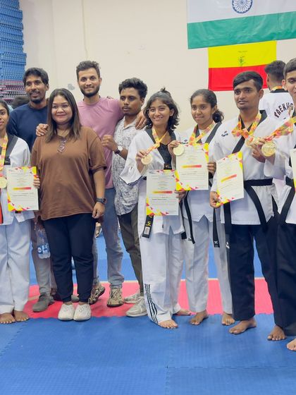 Namaskara! We’re KTA, right here in Bengaluru. For us, Taekwondo is more than medals – it’s about respect, discipline, and building guts. That feeling when our students win gold for Bengaluru Urban or get picked for Nationals? Next level, boss! I keep learning too – just got my Poomsae coaching cert from Pune. We’re family here, always training hard, sometimes playing with our puppy Lachmi, and cheering every kid, adult, or Para-athlete. KTA means achievement, simple.