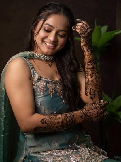 We started small, just me and a few friends, now we’re 25 artists strong. For 10 years, Kartik Mehandi Art has been about more than just mehendi - it’s about making memories for brides. We don’t talk much, our designs do. Each pattern is a piece of someone’s love story, a little emotion on the palm. We use only natural henna, and every bride’s dream is safe in our hands.