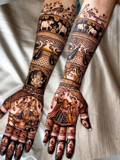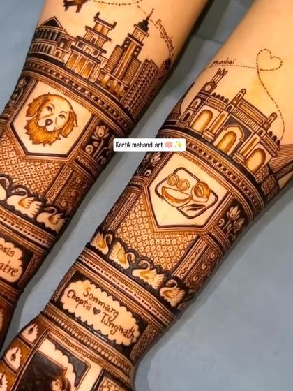 Personalised story-telling mehandi - Want your love story, your pet or your favourite food in your mehendi? We draw it, just say it.