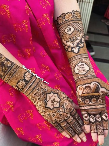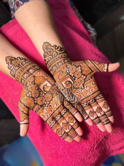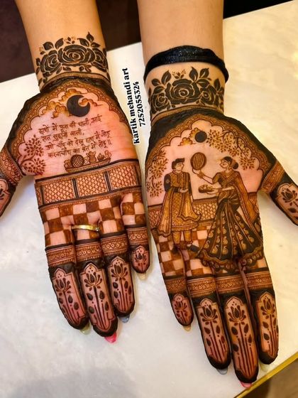 We started small, just me and a few friends, now we’re 25 artists strong. For 10 years, Kartik Mehandi Art has been about more than just mehendi - it’s about making memories for brides. We don’t talk much, our designs do. Each pattern is a piece of someone’s love story, a little emotion on the palm. We use only natural henna, and every bride’s dream is safe in our hands.
