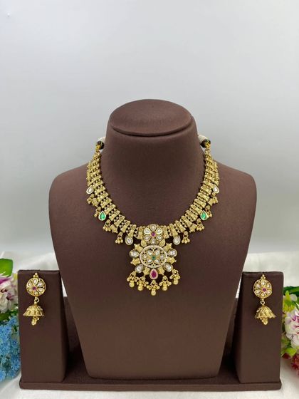 - Necklace sets: bridal chokers, multi-layered, antique gold, simple pendants