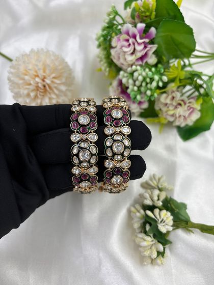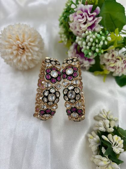- Bangles & bracelets: openable styles with Kundan, Moissanite, Meenakari