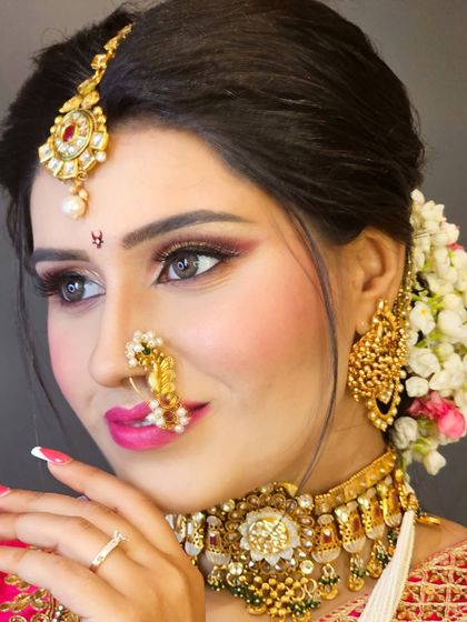 - I create everything from classic Indian bridal to authentic Maharashtrian looks, including the full nath and chandrakor bindi.