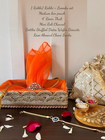 I design my Rakhi collection to celebrate every sibling bond. Here you will find everything from handcrafted rakhis for your brother, elegant lumba sets for your bhabhi, and fun designs for kids, to complete thaalis and luxurious gift hampers filled with love and treats.