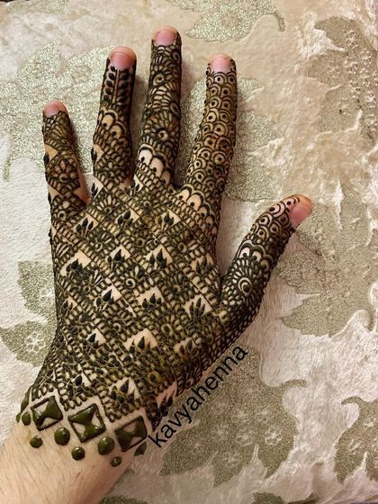 I offer both individual and group services, with designs varying from minimal patterns to elaborate full-hand coverage. My work incorporates cultural motifs like peacocks, florals, and geometric patterns.