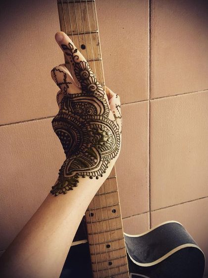 Hey, I’m Kavya. Mehendi isn’t just work for me - it’s like doodling stories on skin. Sometimes it’s Krishna’s face, sometimes just a flower, sometimes a wild idea someone brings. I get lost in the lines, especially when it’s for Janmashtami or something close to my faith. Whether it’s a tiny tattoo or big bridal mehendi, I put my heart in it. If I’m not drawing, I’m probably strumming my guitar.