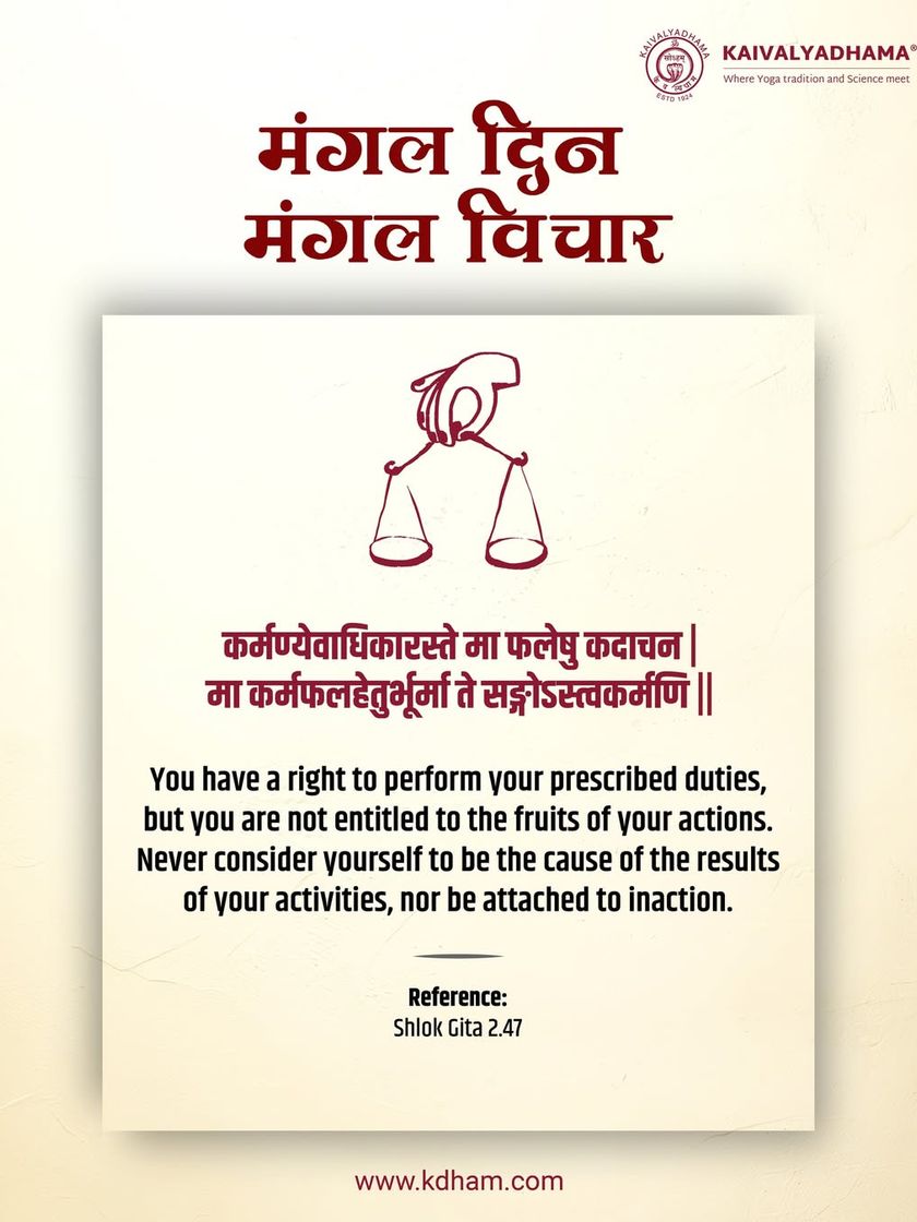 We share timeless insights from yogic scriptures like the Bhagavad Gita and Yoga Sutras. These "Mangal Din, Mangal Vichar" (A good day starts with good thoughts) posts offer practical wisdom for cultivating a balanced mind and a purposeful life.