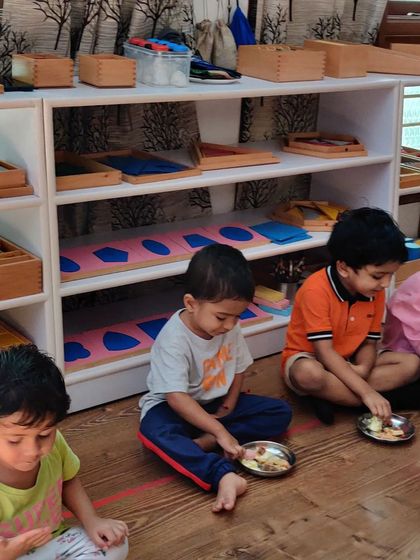 - Montessori practical life activities: Cooking without fire (think bhelpuri with swalpa (a little) mix!), pouring, cleaning, sharing.