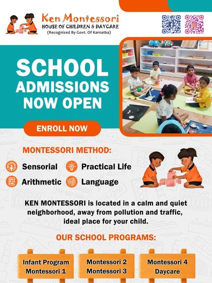 Hey, we’re Ken Montessori. Started off in 2013 as a small house full of kids and now, wow, ten years in – feels wild. We’re not just a school, it’s like a big family. You’ll see little ones counting ‘Ondu, eradu...’ (One, two...) or sewing a button with deep focus. Festivals, cows, parents, grandparents – all part of our vibe. We trust the kids and the pure Montessori environment to surprise us every day.