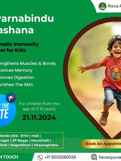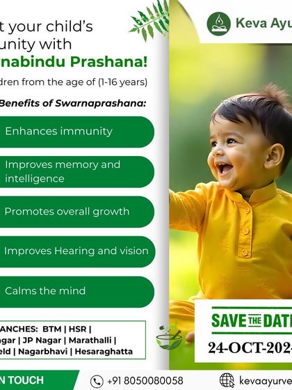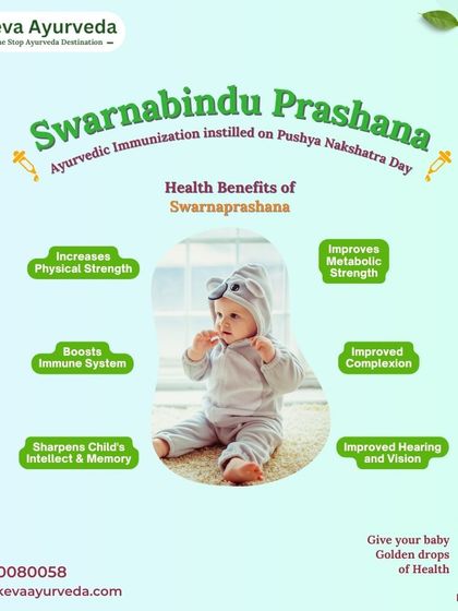 We offer monthly Swarnabindu Prashana drops, baby massage, and support for common childhood issues to help kids aged 1 to 16 build immunity, improve growth, and boost memory using Ayurvedic methods.