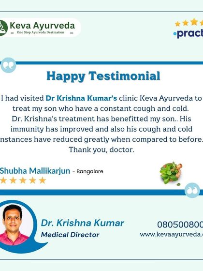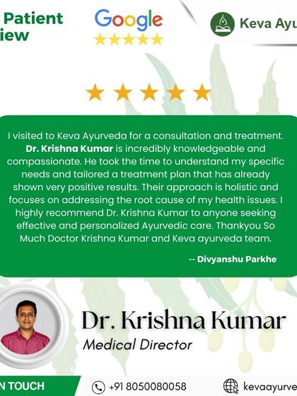 Namaste. We’re Keva Ayurveda. Started out small in Bangalore, now we’re all over the city. Fourteen years, thousands of people, lots of healing, lots of chai breaks. Our founder Dr. Krishna Kumar always says, ‘Ayurveda is family, not just medicine.’ We listen, we explain, we don’t rush. Suresh ji said our advice is short and sweet, and that’s how we roll. Seeing folks get better, that’s our real win.