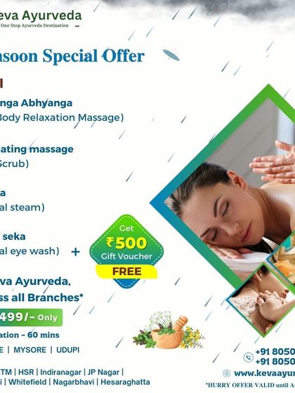 Experience deep relaxation and detoxification with our core Ayurvedic therapies. We offer treatments like Abhyanga (full-body oil massage), Shirodhara (stress-relief oil stream), and Netra Tarpana (eye rejuvenation) to restore balance to your body and mind.