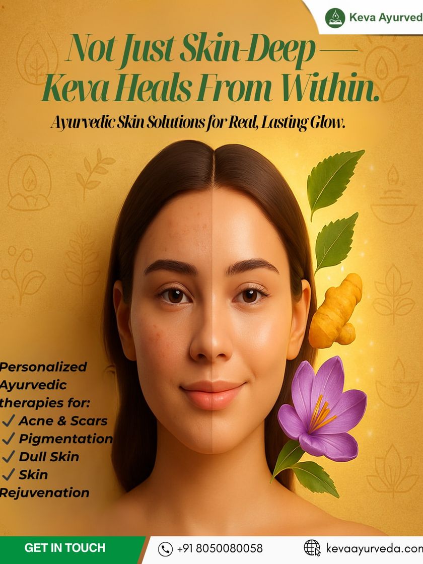 We address skin issues like acne, psoriasis, and pigmentation by healing from within. Our treatments, including Mukhalepam and herbal facials, use natural ingredients like Neem and Saffron to restore your skin's natural balance and glow.