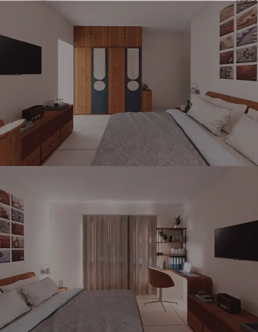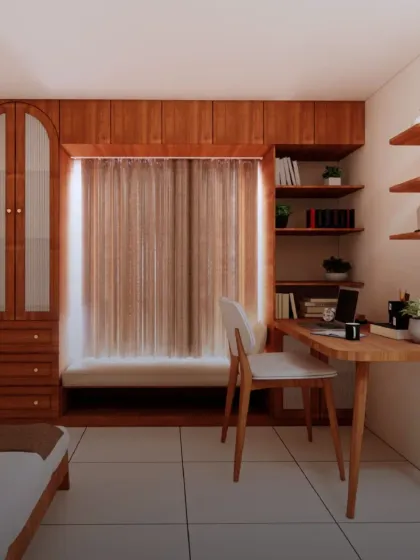 This 3BHK apartment interior was designed for a family with deep Mangalorean roots and a love for Hindustani music. I used warm Athangudi tiles, carved wooden columns, and a minimal palette to create a space that feels both culturally grounded and modernly serene.