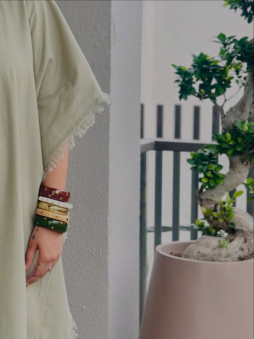 My wooden bangles are all about adding personality to your wrist. Each one is handmade, perfect for stacking to create a look that's uniquely yours. They add a touch of earthy, handcrafted charm to both Indian and Western outfits.