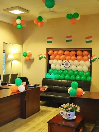- Independence Day: All about tricolor Independence Day decor with saffron, white, and green balloons. I can even make a balloon Indian flag backdrop, complete with the wheel in the center.